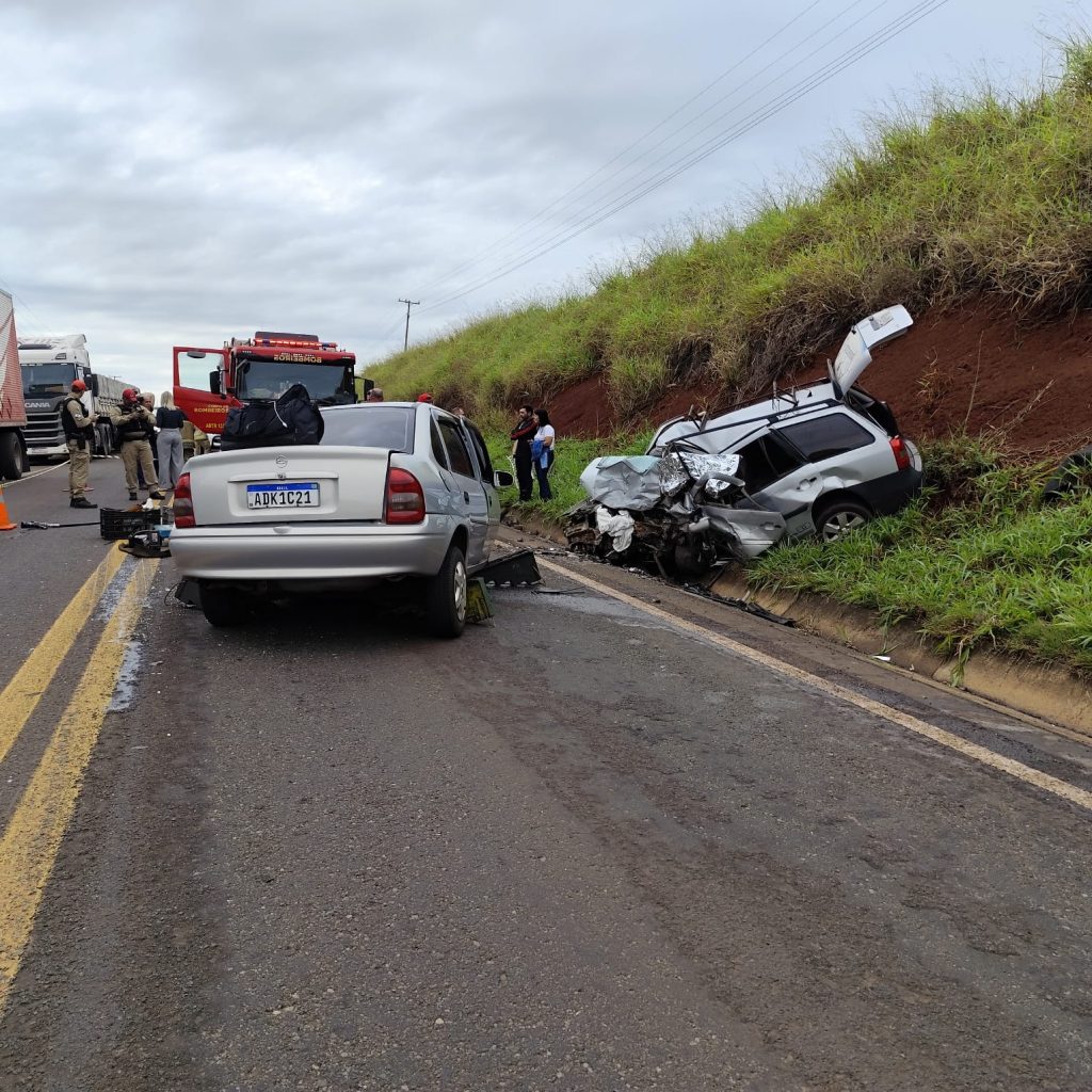 magens registrada por um motorista de caminhão que trafegava pela rodovia mostram o momento exato do acidente. Segundo a Polícia Rodoviária Estadual (PRE), as imagens indicam que o condutor do Corsa invadiu a pista contrária, provocando a colisão frontal.