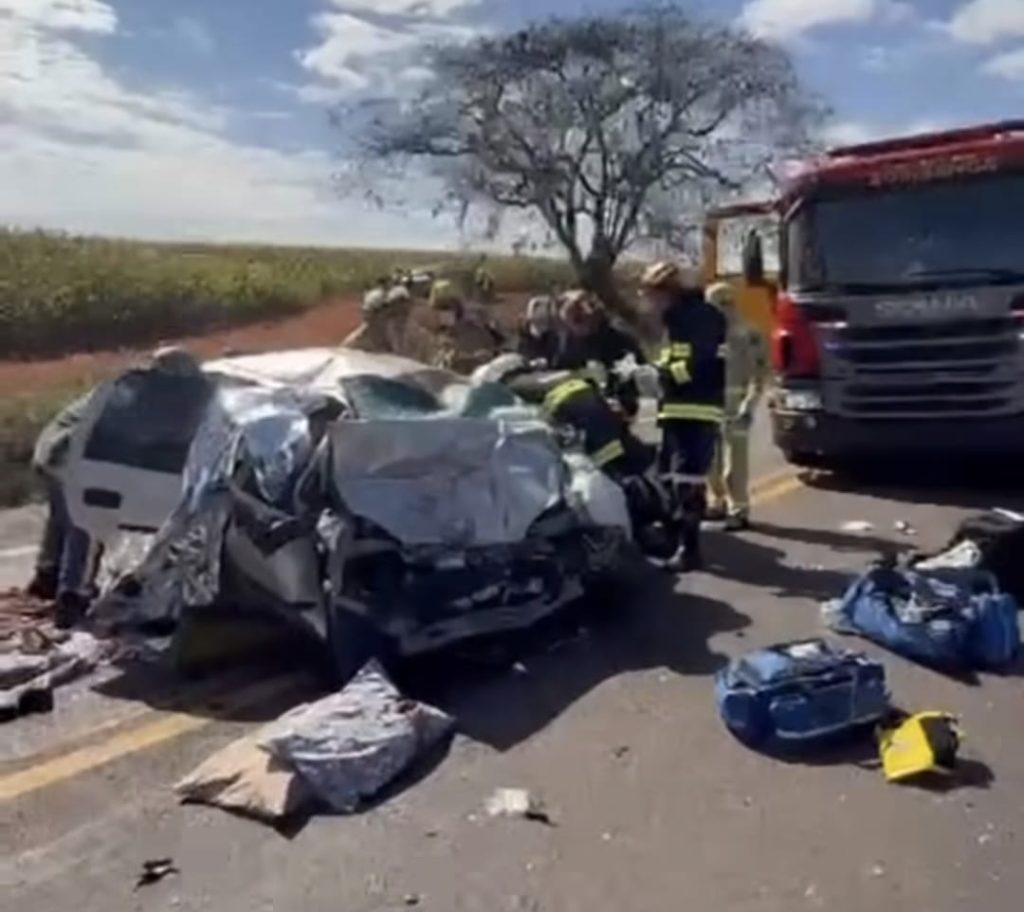 O acidente envolveu um carro de passeio e uma carreta. Com o impacto da colisão, duas ocupantes do automóvel — mãe e filha — morreram ainda no local, presas entre as ferragens. Uma das vítimas tinha cerca de 13 anos de idade.