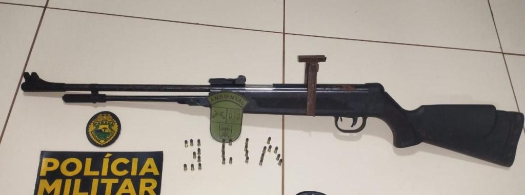 Por volta das 20h, dois homens, de 67 e 50 anos, foram abordados ao retornarem ao carro. Durante busca no veículo, os policiais encontraram uma carabina calibre .22 municiada com um cartucho na câmara, além de 26 munições intactas, totalizando 27 unidades. Também foram apreendidas três facas, cordas e outros utensílios comumente usados na atividade de caça.