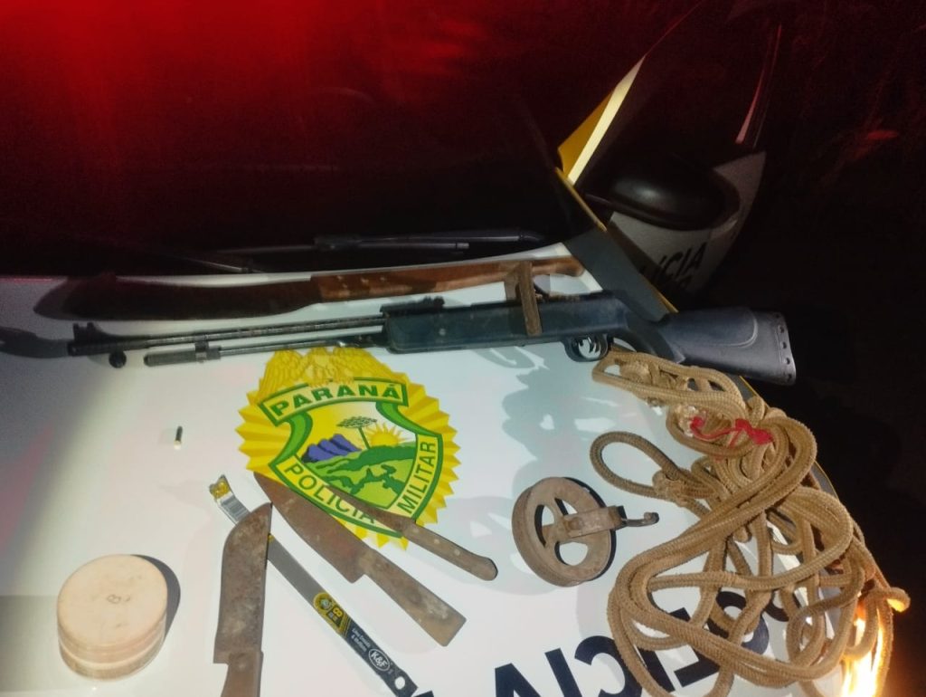 A equipe policial se deslocou até a região — localizada a cerca de 60 quilômetros de Campo Mourão — e encontrou o veículo estacionado na área de proteção. Os suspeitos não foram localizados de imediato, mas os agentes montaram uma vigilância no local aguardando o retorno dos possíveis caçadores.