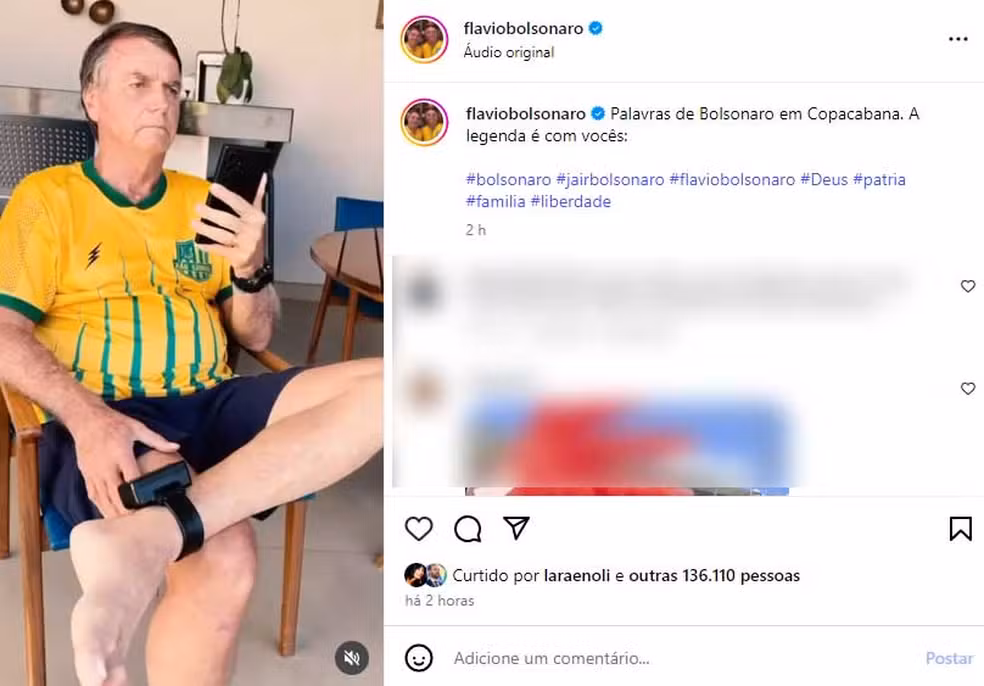 Flávio chegou a colocar brevemente o pai no viva-voz do telefone para falar para o público no Rio. Em seguida, por volta das 14h, o senador postou um vídeo no qual mostra o outro lado desta ligação: o pai, em casa, mandando uma mensagem para seus apoiadores.