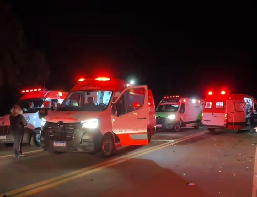 Diversas viaturas de socorro foram mobilizadas, entre elas o Corpo de Bombeiros e unidades do Samu, incluindo a de Suporte Médico Avançado de Vida de Maringá.