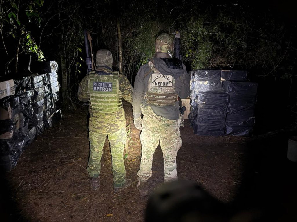 Os produtos estavam sendo descarregados de um barco e sendo lançados em meio à vegetação às margens do rio Paraná. Toda a ação foi monitorada e devido à distância não foi possível realizar a abordagem dos indivíduos no local, que ao perceberem a presença policial empreenderam fuga em uma caminhonete Fiat Toro, de cor prata.