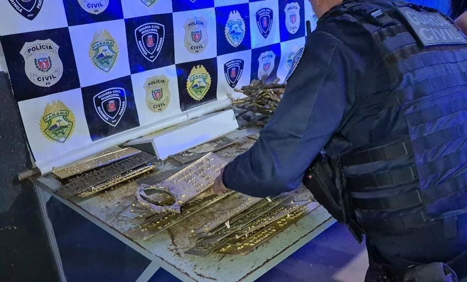 Um jovem de 19 anos e uma adolescente de 17 foram detidos pela Guarda Civil Municipal de Maringá na noite de quarta-feira (24), após serem flagrados furtando peças de bronze de túmulos no Cemitério Municipal.