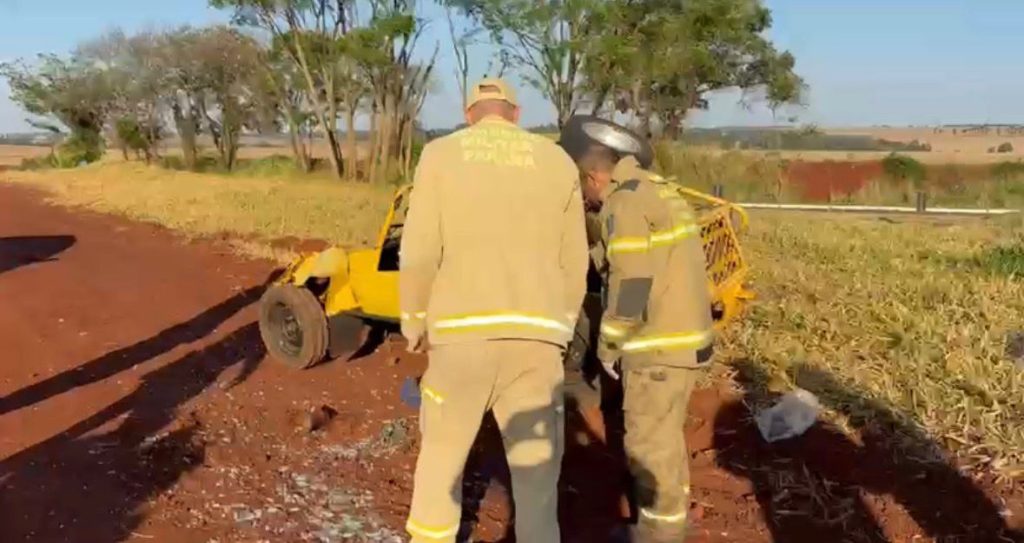 Na tarde deste domingo dia (28), o corpo de bombeiros atendeu um acidente de capotamento de carro gaiola que era ocupado por dois adolescentes.