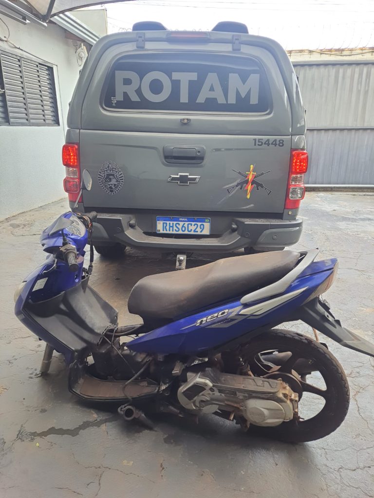 Além da moto, os policiais apreenderam um telefone celular durante a ação.
