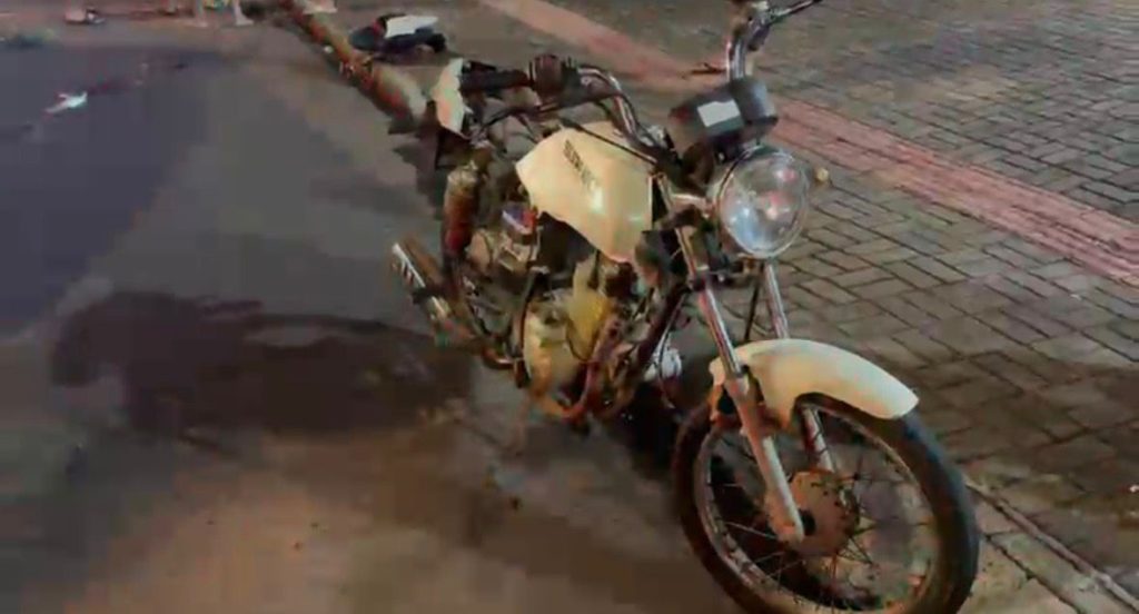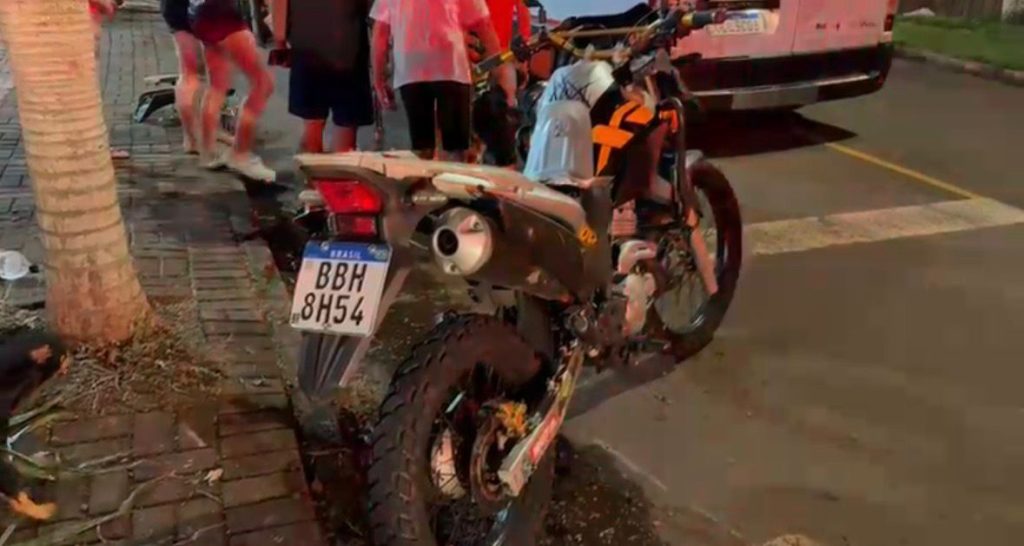 Uma motocicleta Honda XRE 300 seguia pela via preferencial quando, ao chegar ao cruzamento, foi surpreendida por um veículo Suzuki, cujo condutor subia a via e acabou avançando a preferencial, provocando a colisão.