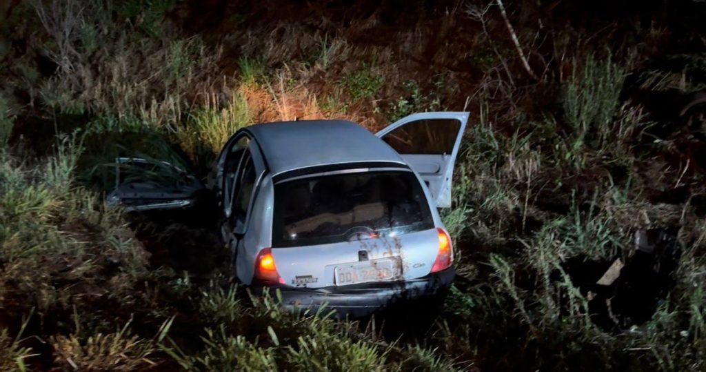 Um acidente foi registrado na noite deste domingo na PR-487, entre Campo Mourão e Luiziana, envolvendo um Chevrolet Montana e um Renault Clio. Os veículos seguiam em sentidos opostos quando houve uma colisão lateral (abarroamento), que acabou tirando ambos da pista.