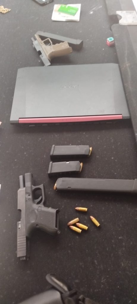 Durante a abordagem, foram apreendidos diversos materiais que evidenciam a estrutura do grupo e as táticas utilizadas para evadir a justiça. Entre os itens recolhidos estão diversos aparelhos celulares, joias, dinheiro em espécie e cartões bancários. O que chamou a atenção dos policiais a apreensão de duas armas de fogo, incluindo uma equipada com seletor de rajada, dispositivo que aumenta consideravelmente o poder de fogo e a periculosidade do armamento. Também foram encontrados documentos falsos, utilizados pelo líder para ocultar sua verdadeira identidade e enganar fiscalizações policiais.