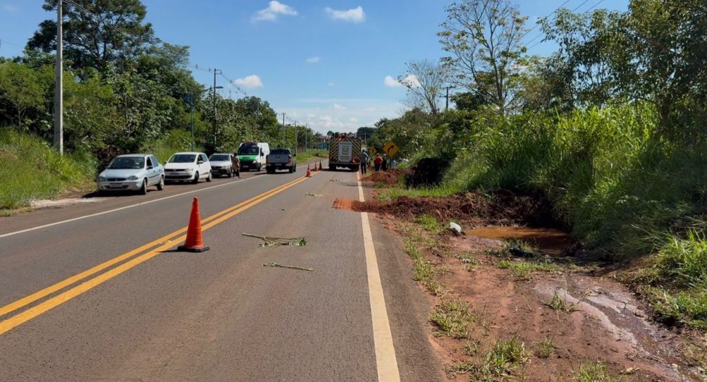 De acordo com as informações apuradas, um veículo Ford Fiesta, de cor preta, seguia pela rodovia quando o condutor, um homem de 55 anos, perdeu o controle da direção. O automóvel acabou tombando às margens da pista, caindo em uma valeta utilizada para o escoamento de água da chuva.
